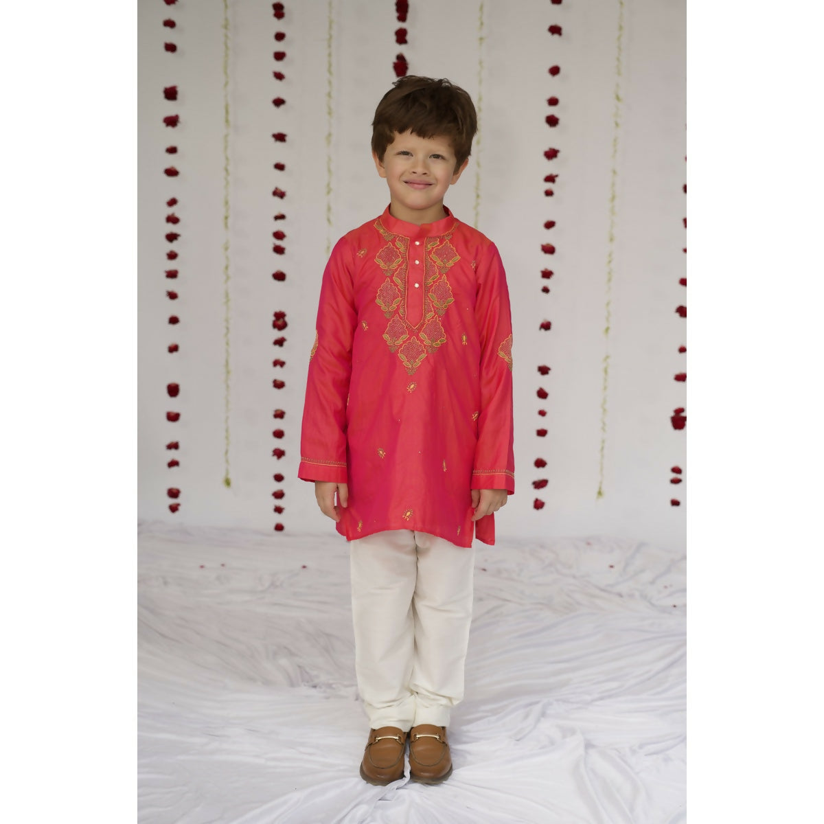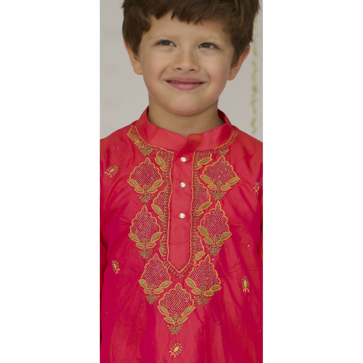 Little Awadh Silk Jaali Boota Kurta - Pink