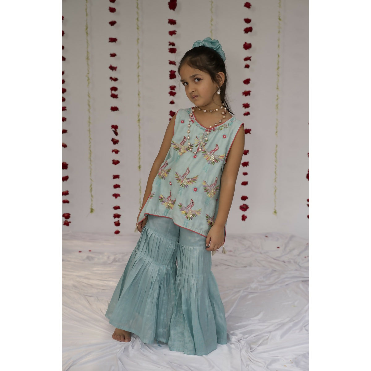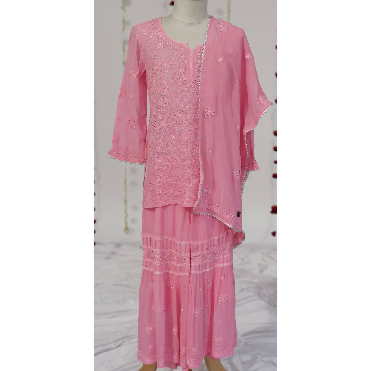Little Awadh Rose Jaal Chikankari Sharara Set
