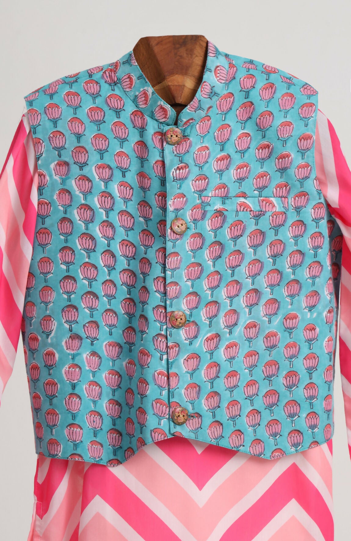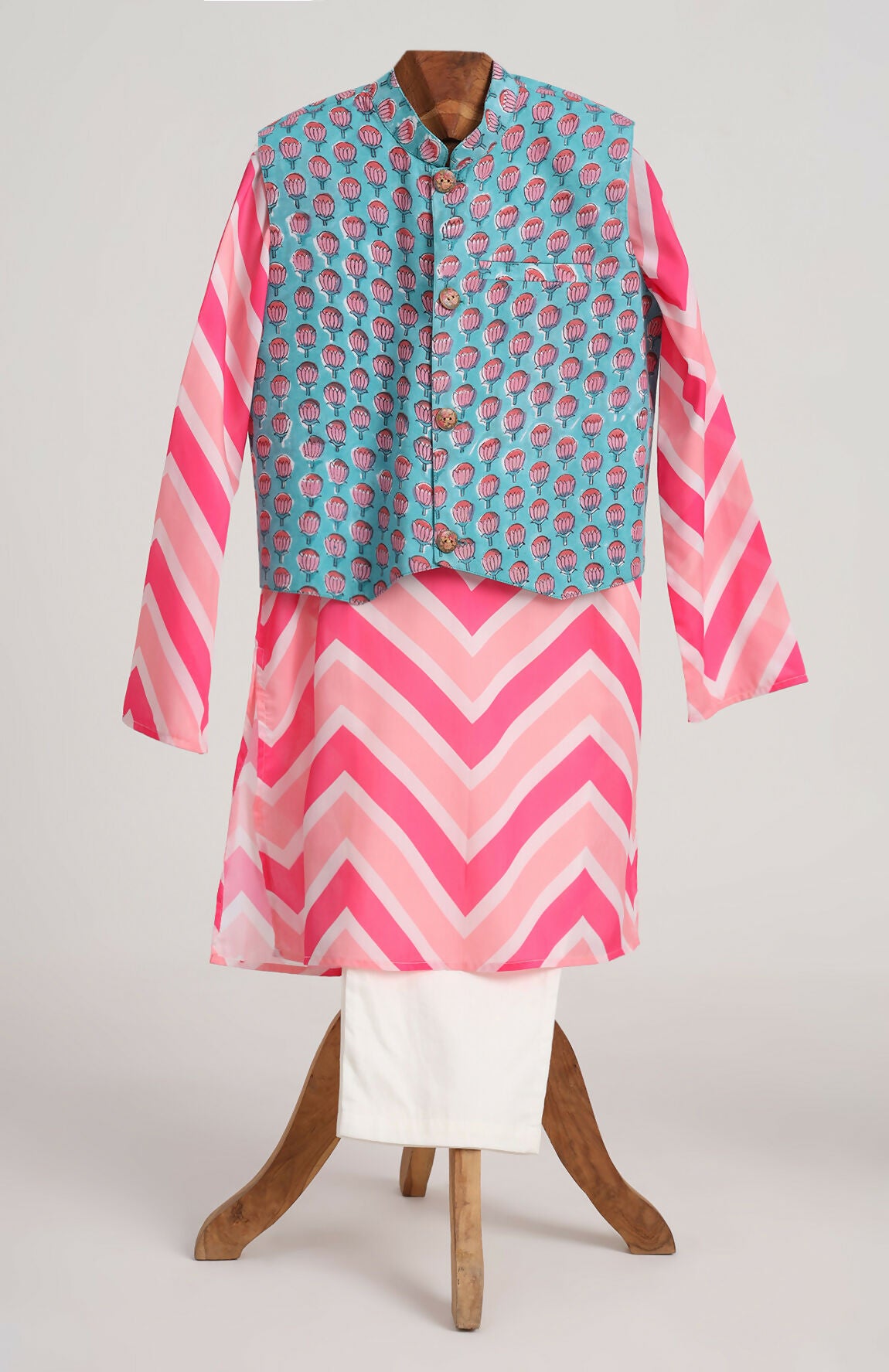 Cotton Kurta with Glaze Cotton Pyjama and Jacket
