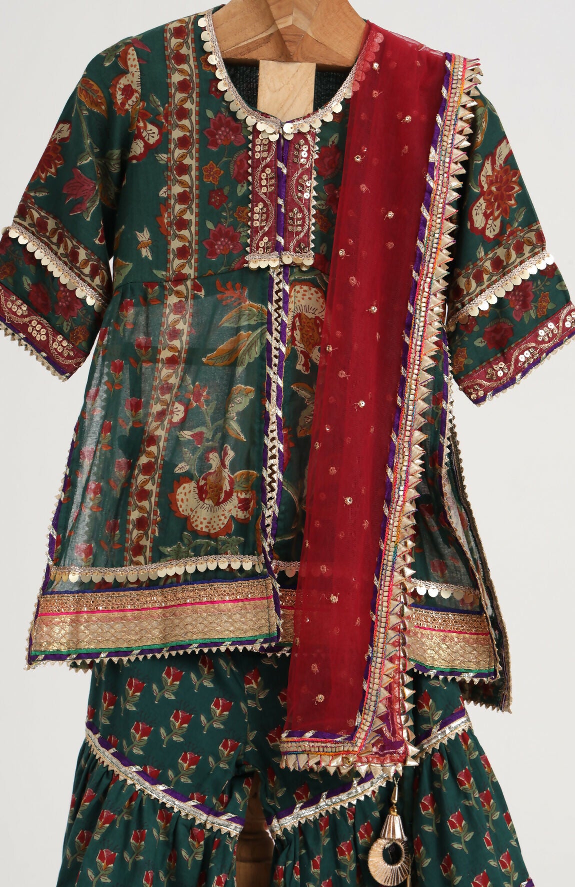 Block Printed Kurta and Sharara paired with Soft Net Dupatta