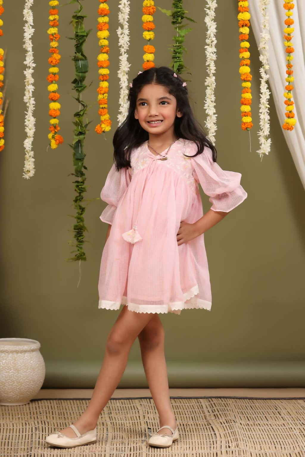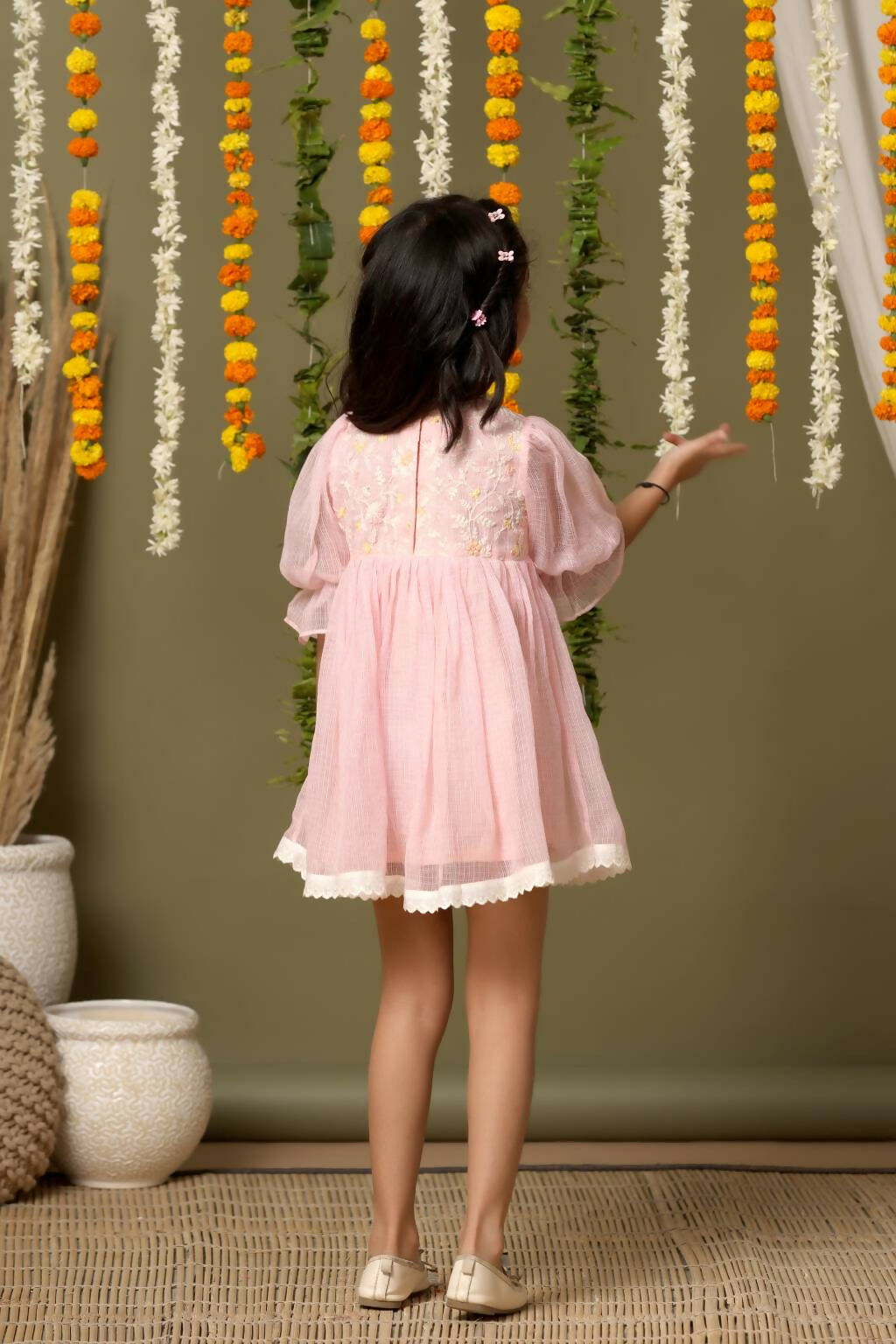 Casa Nions Pink Embroided Dress With Lace Detailing