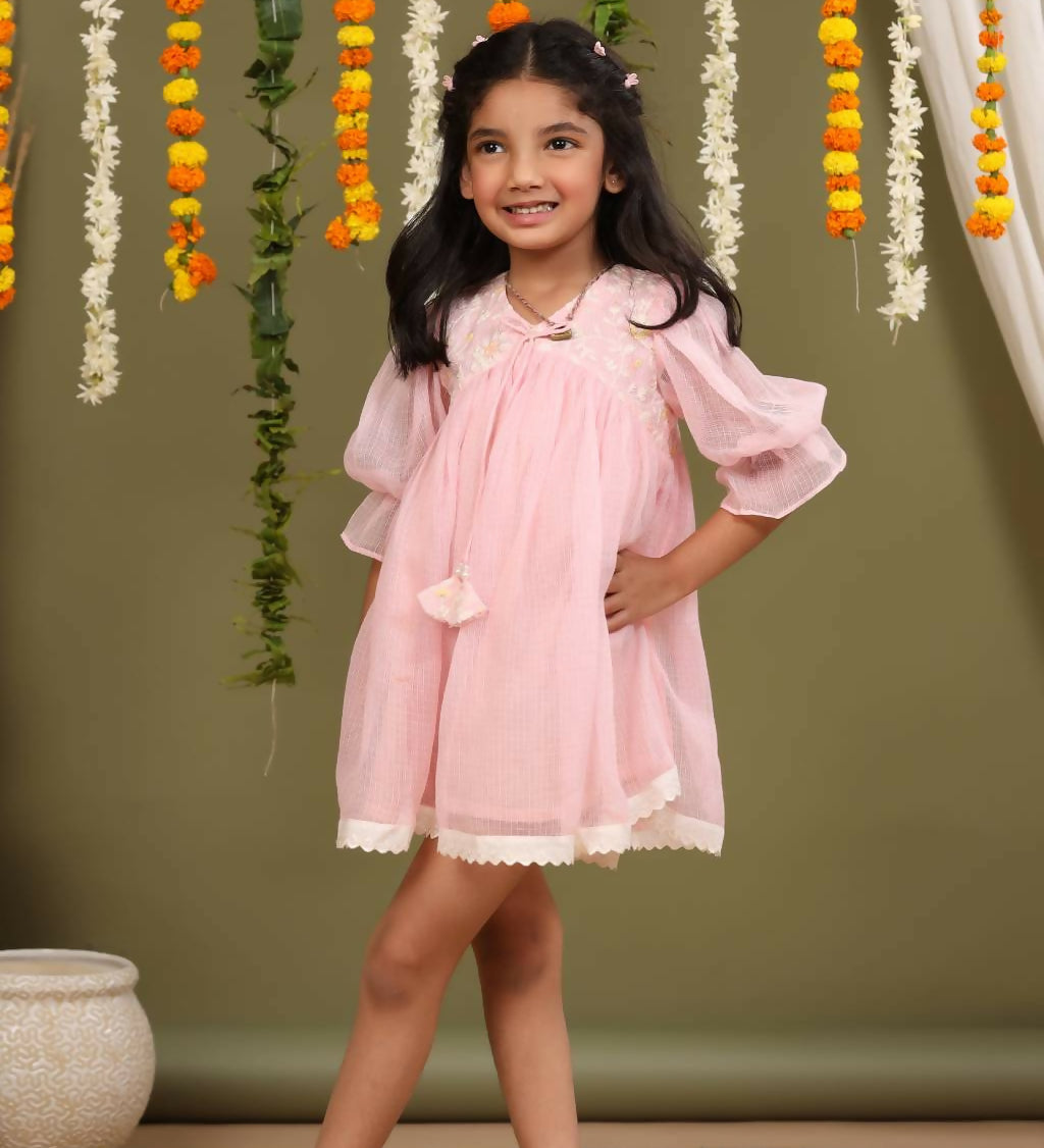Casa Nions Pink Embroided Dress With Lace Detailing