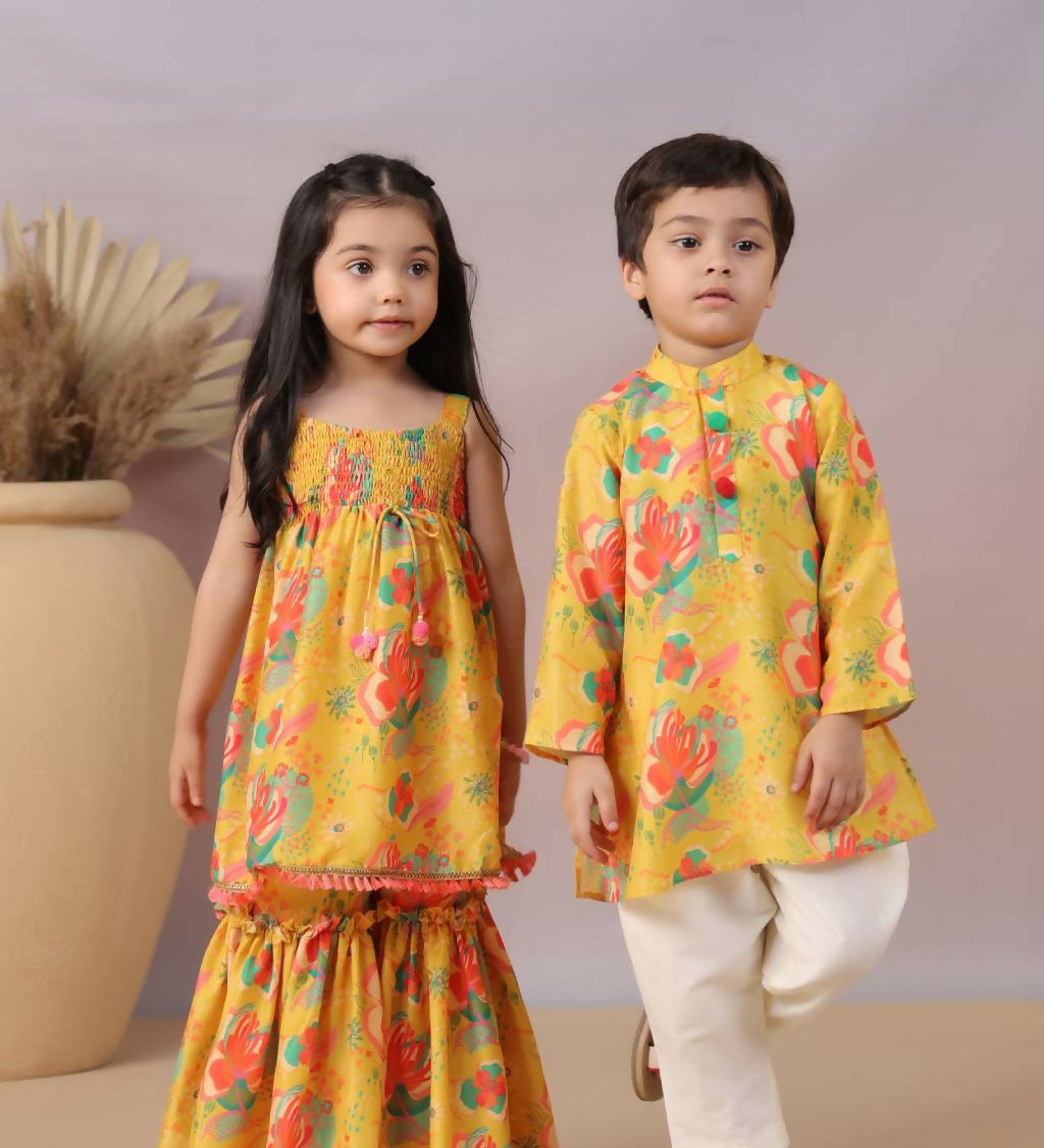 Casa Ninos Yellow Floral Sharara Set