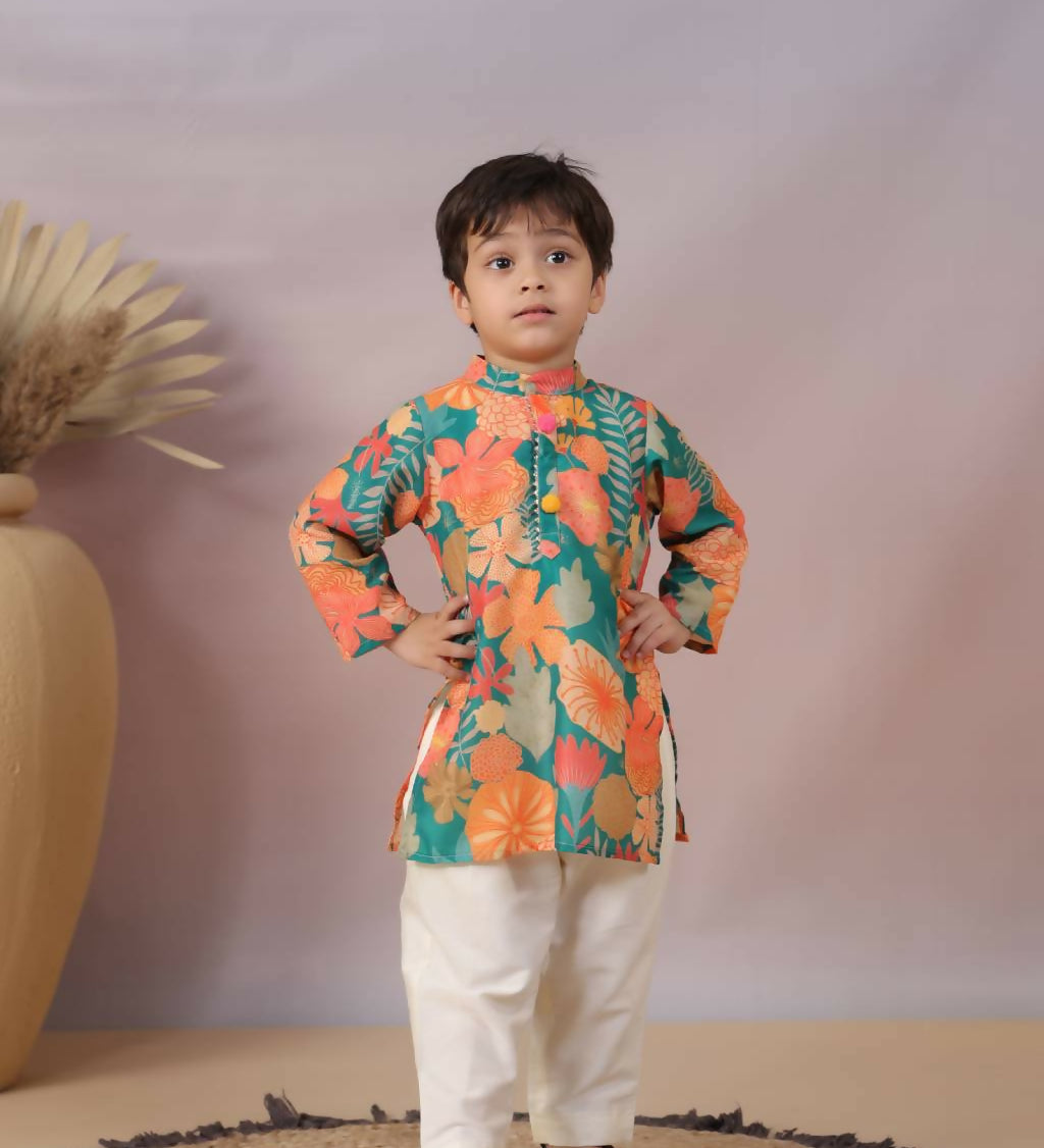Sehmat Couture Boys Floral Print Sherwani Set