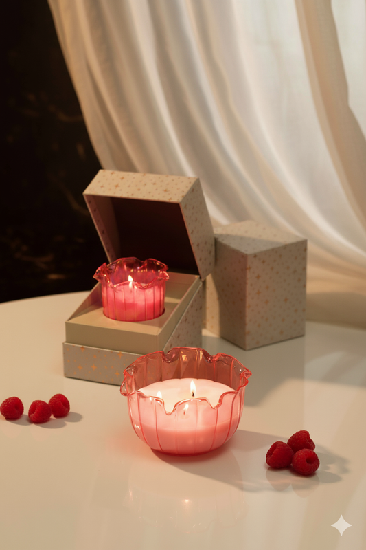 Enhance your space with our Berry Glow Red Glass Fluted Candle- Set of 2. Designed with multiple wicks for a brighter, luxurious glow, this candle is perfect for home décor, gifting, or festive settings, creating a warm and elegant ambiance.