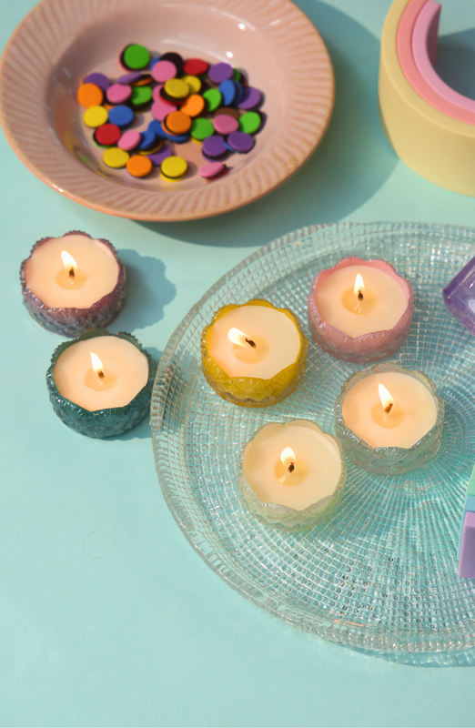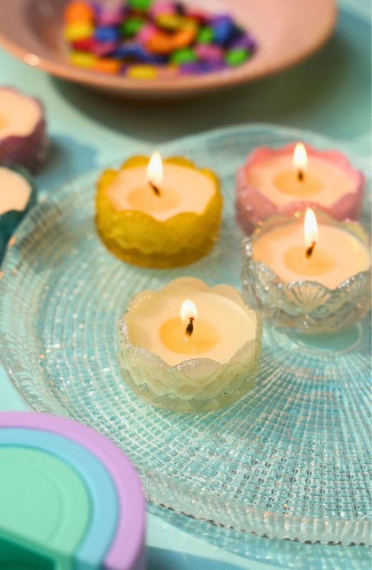 Add a touch of sparkle to your celebrations with our circle of light TeaLight Candle Set of 4 in multi-color shades. Perfect for Diwali décor, pooja thalis, and festive celebrations, these compact candles create a warm, inviting glow that elevates every moment with elegance.