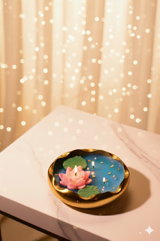 Bring home the charm of tradition with our Lotus Pond Urli Candle- Small. Designed for puja rituals, festive décor, or thoughtful gifting, this elegant piece adds a serene touch to your space. Its timeless lotus design paired with a warm, luxurious glow makes it a beautiful blend of tradition and sophistication.
