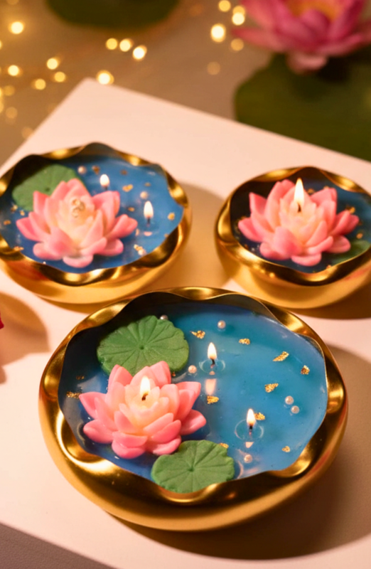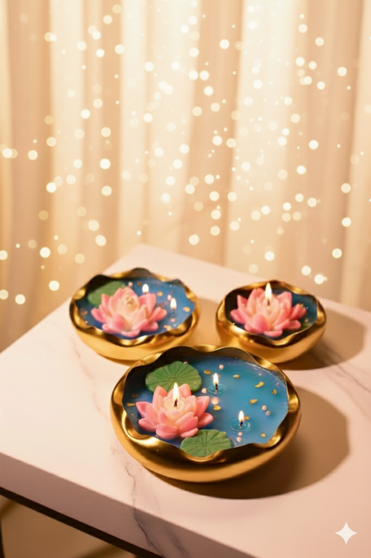 Celebrate tradition with our Lotus Pond Urli Candles- set of 3. Perfect for puja rituals, festive décor, or gifting, these decorative urlis create a serene and elegant ambiance, blending timeless design with a warm, luxurious glow.