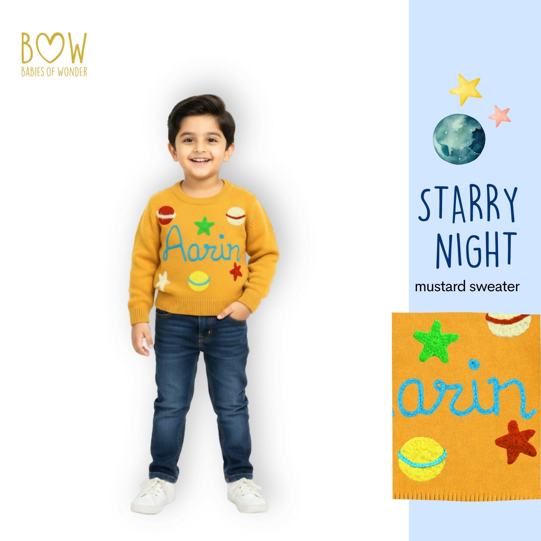 Boys Customised Starry Night Sweater - Mustard