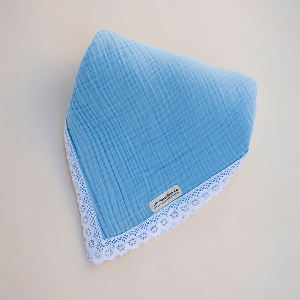 Organic Muslin Baby Swaddle/Blanket With Lace | Soft Blue Snuggle Wrap