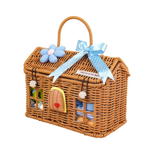 4. Cane Basket Box: This piece comes nicely packed in a cane basket which is in a beautiful home shape basket filled with essentials which makes it a true winner and totally heart warming for the new set of parents.
