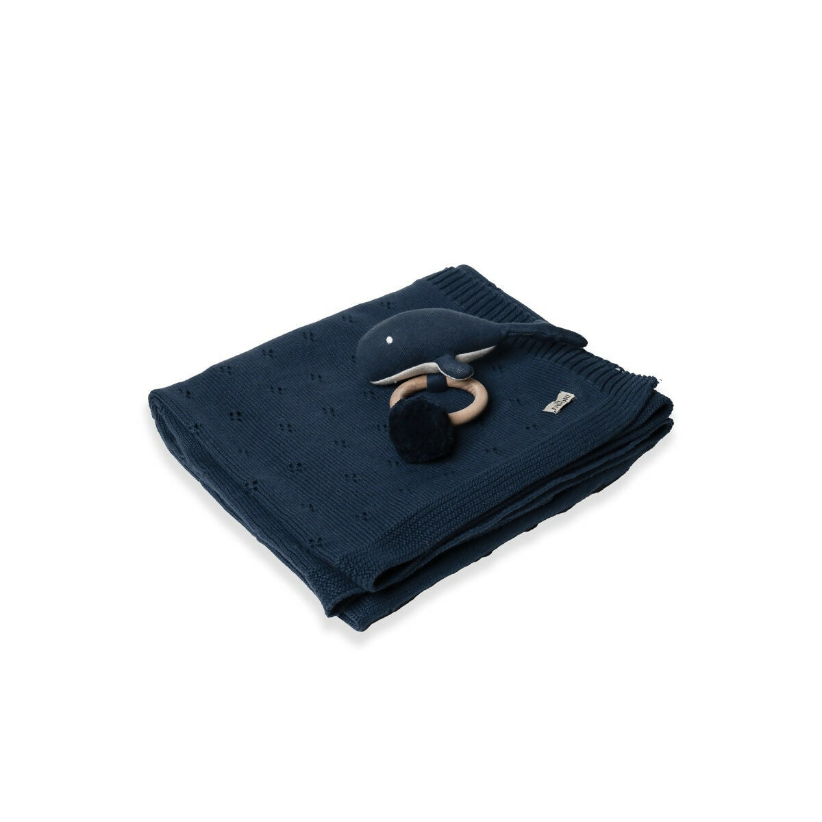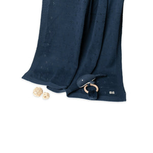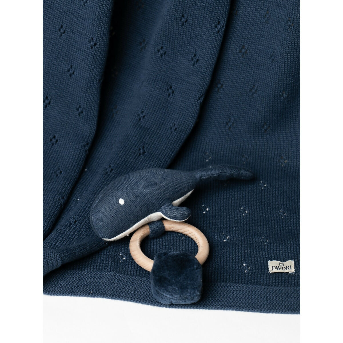 Our blush pink pointelle baby blanket features ultra soft knit and a sweet rabbit rattle- a perfect duo for soothing, sensory play and nap routines.?Crafted from 100% cotton pointelle knit, the fabric is breathable, lightweight and gentle on new born skin while the soft rattle introduces sound play in a safe cuddly form.?Each set comes in a Favori brown kraft paper box.`