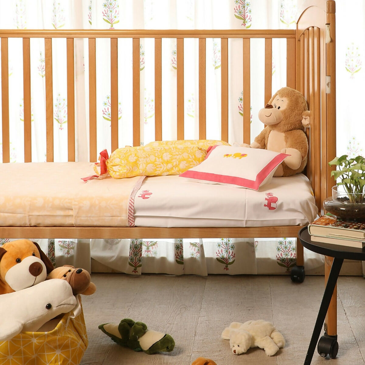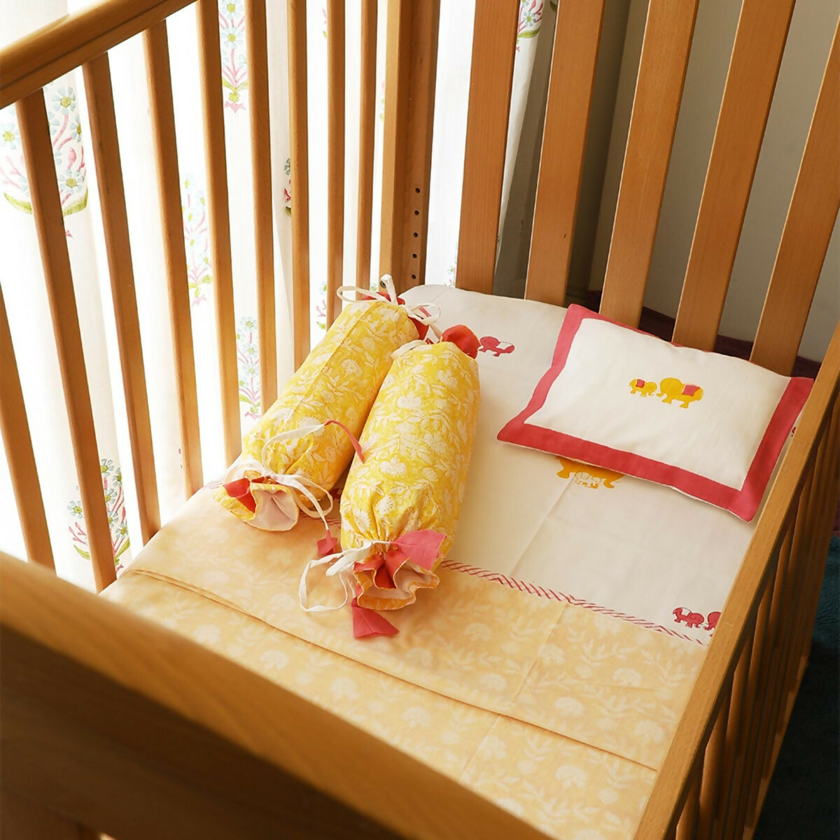 Pillow and Bolster set with fillers with versatile prints to deck up any cot.