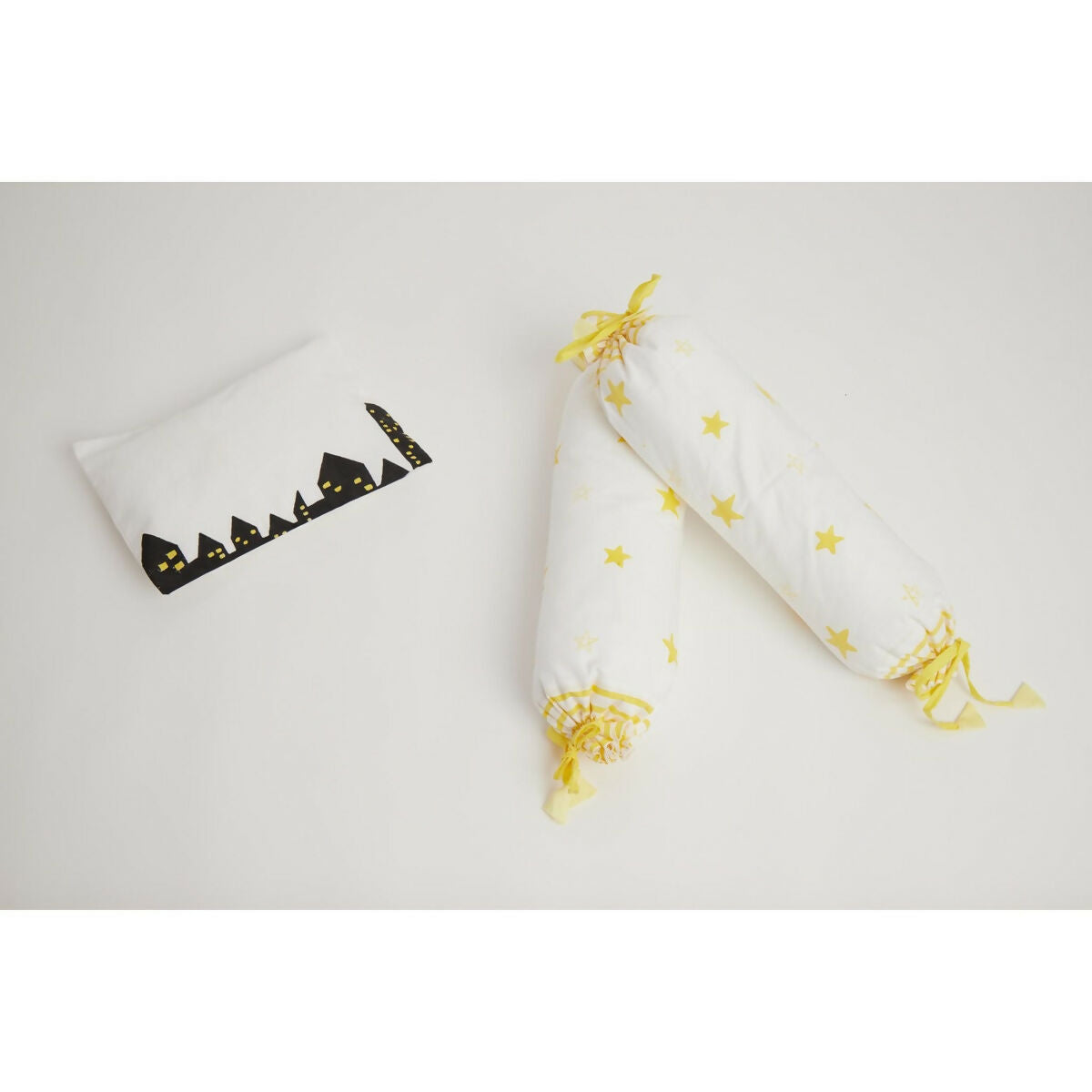 Pillow and Bolster set with fillers with versatile prints to deck up any cot.