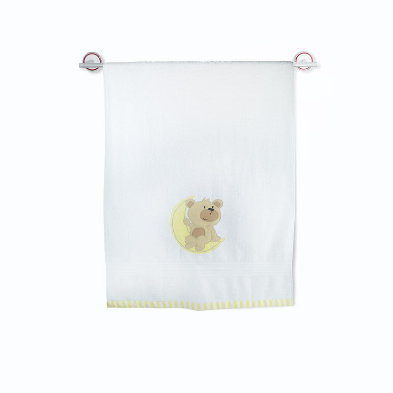 Polkas & Stripes Teddy On Moon White Bath Towel