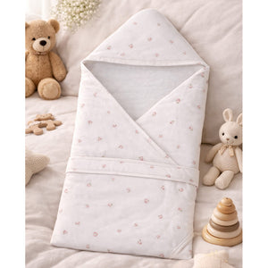 LSB Peach Soft Quilted Cotton Winter Wrapper with Hood for Newborn & Infants with Free storage Pouch