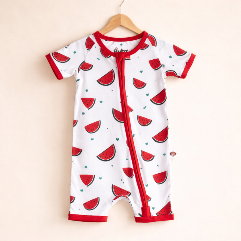 Bubz Bamboo Baby Romper - Soft Breathable Two-Way Zip - Watermelon