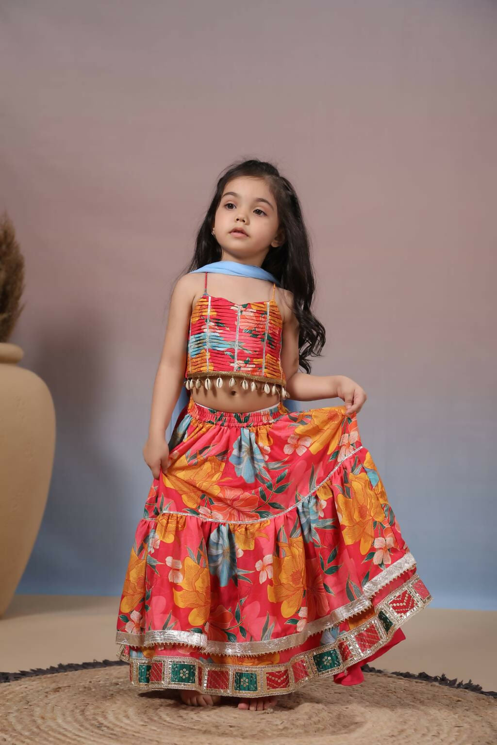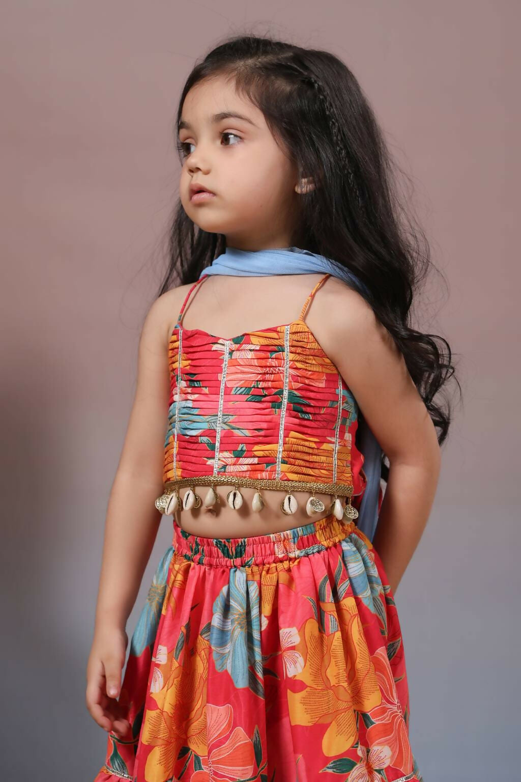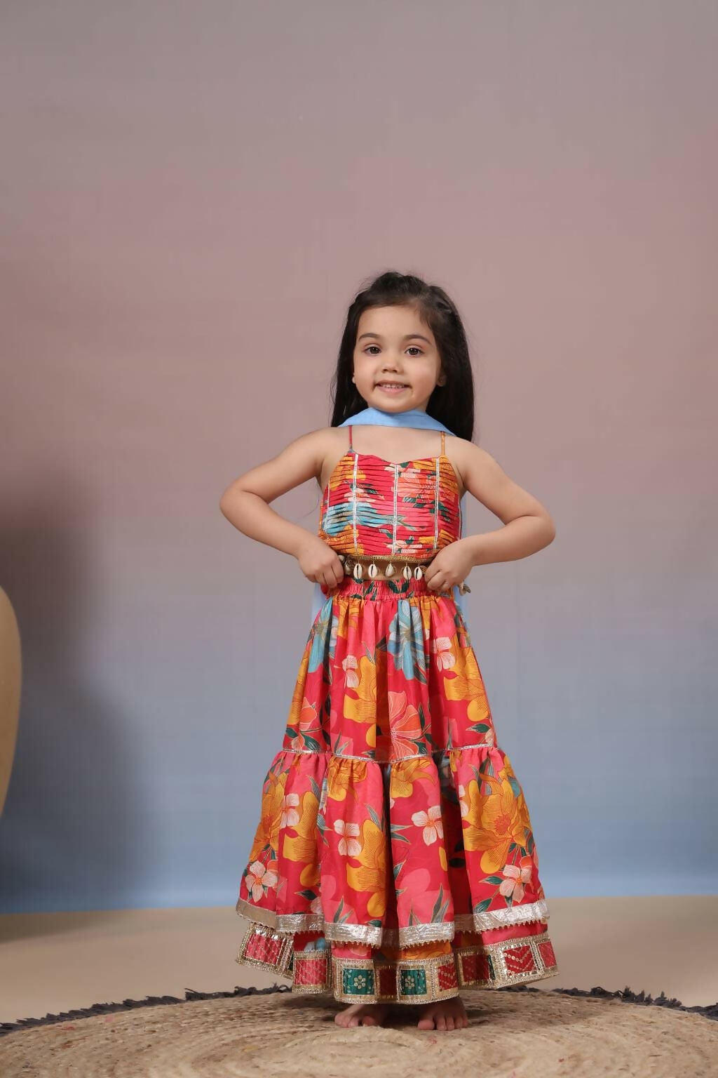 Casa Ninos Sleeveless Pin Tuck Multicolour Lengha Set