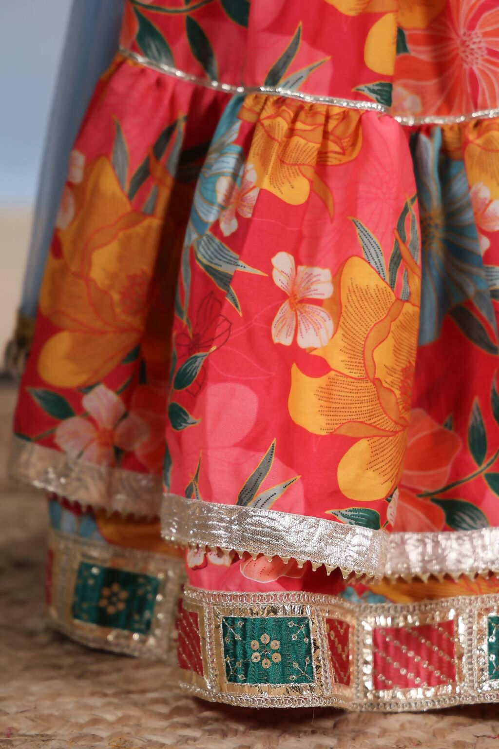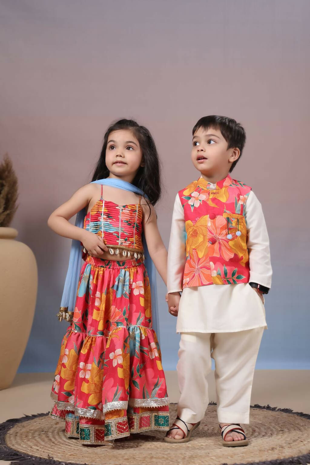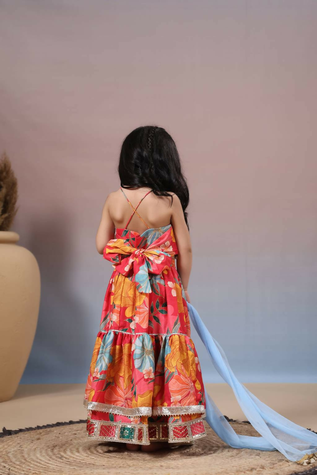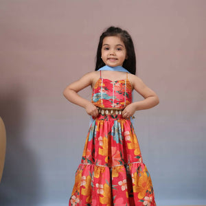 Casa Ninos Sleeveless Pin Tuck Multicolour Lengha Set