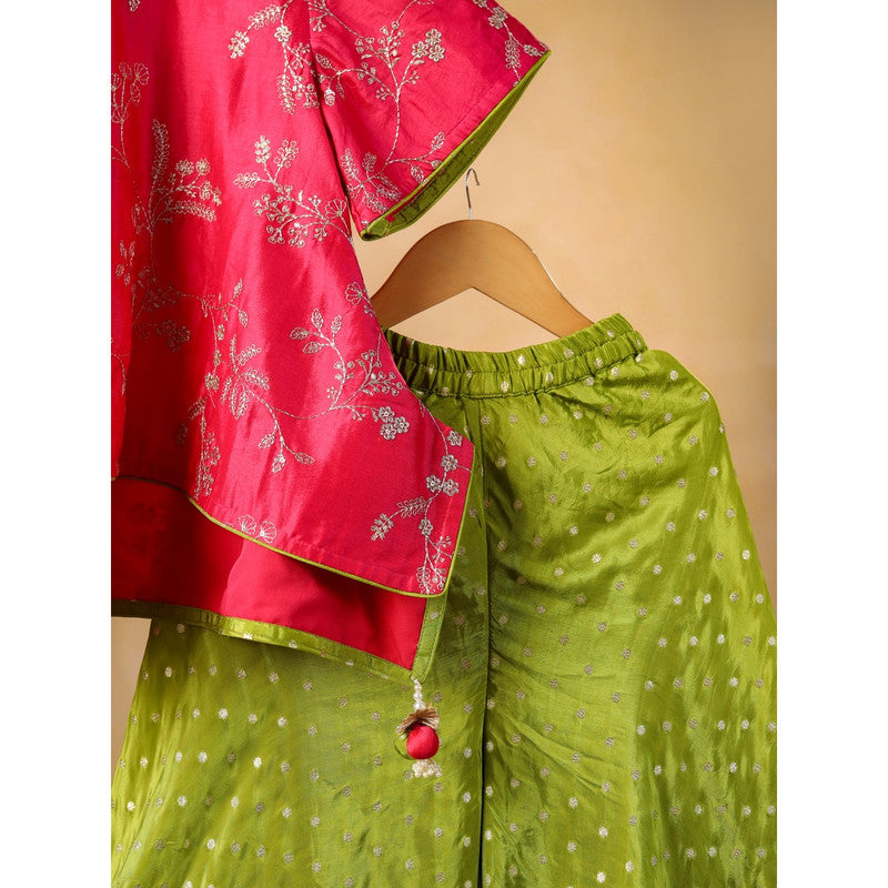 Casa Ninos Pink Embroided Top With Green Sharara