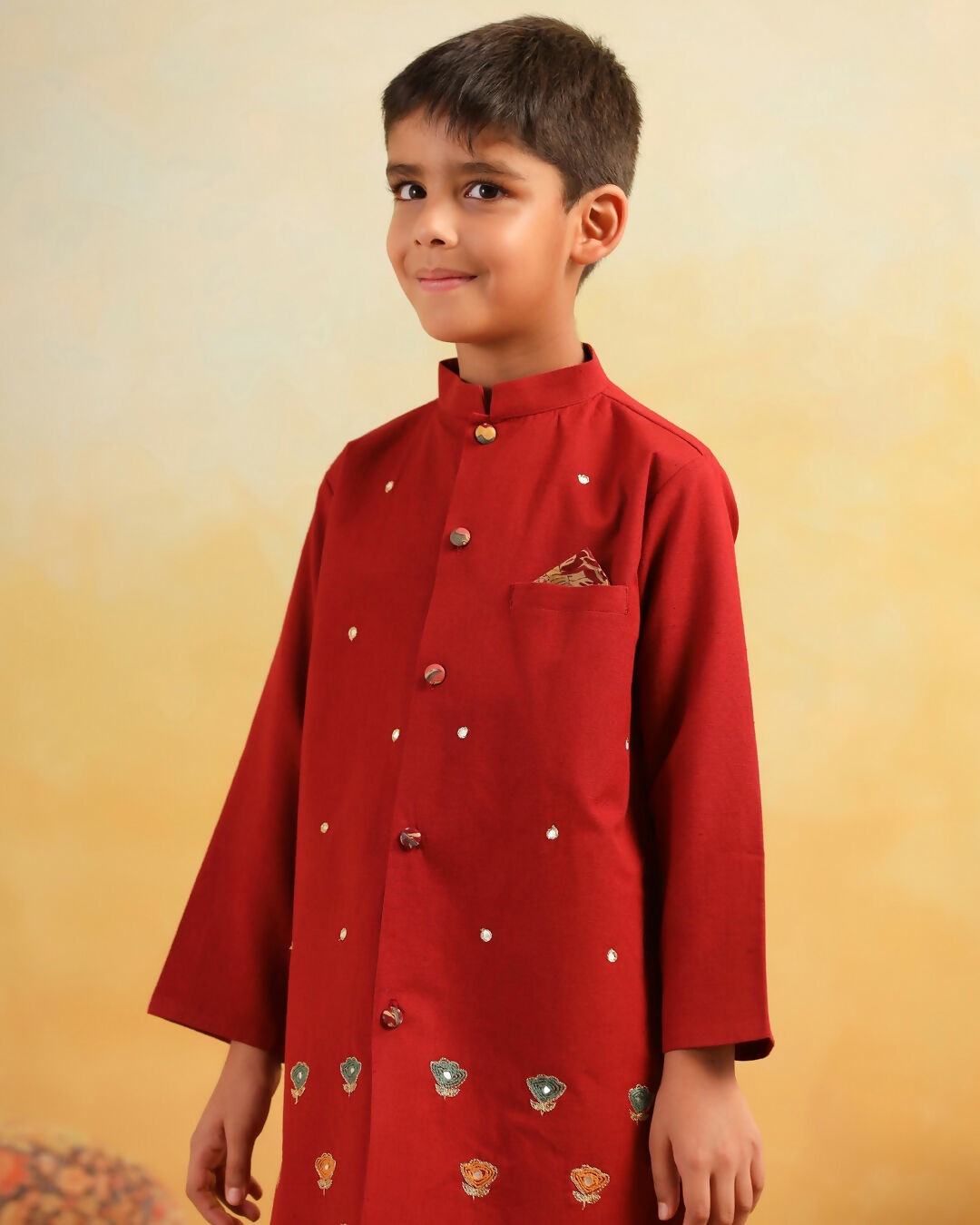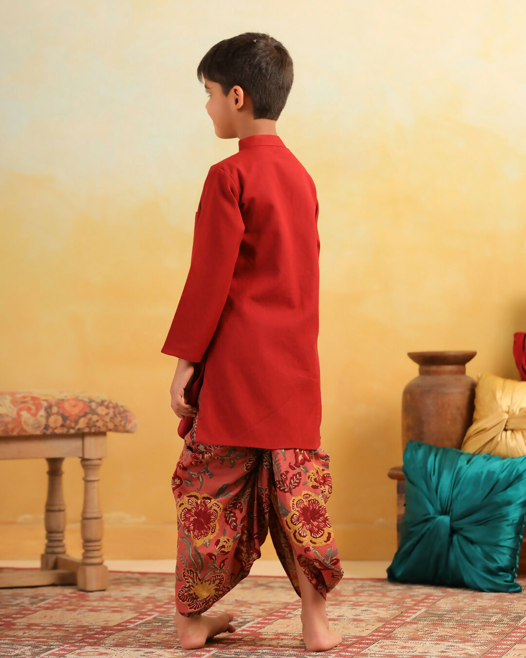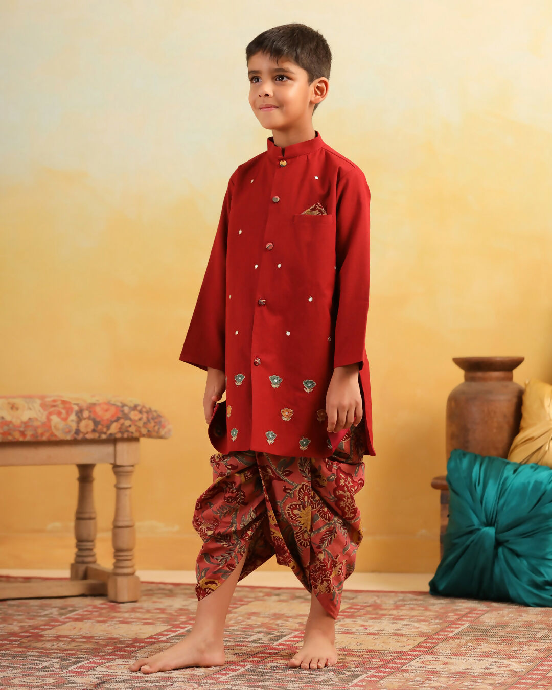 Boy Dhola Maru Dhoti Kurta Set- Maroon