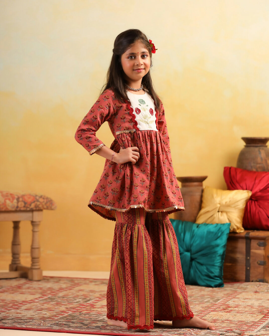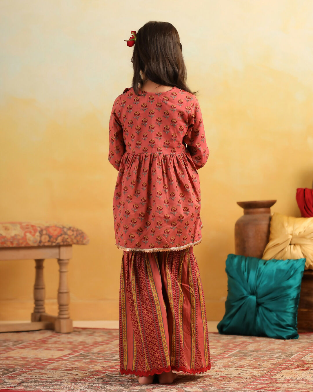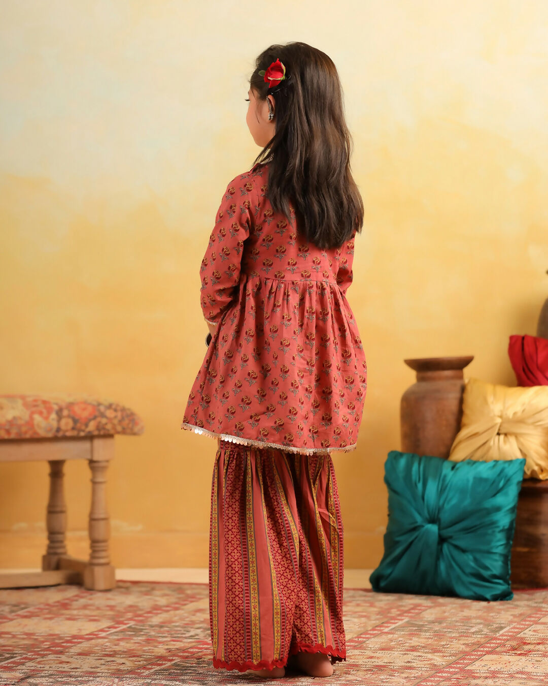 Girl Dhola Maru Embroidered Sharara Set-Peachish Pink