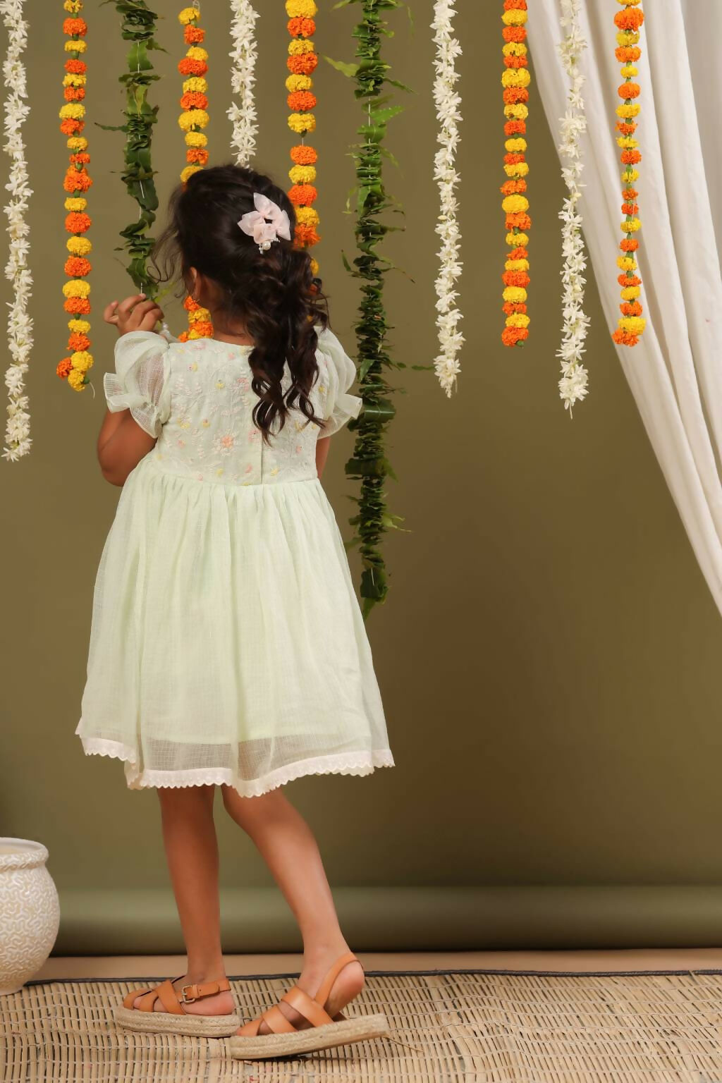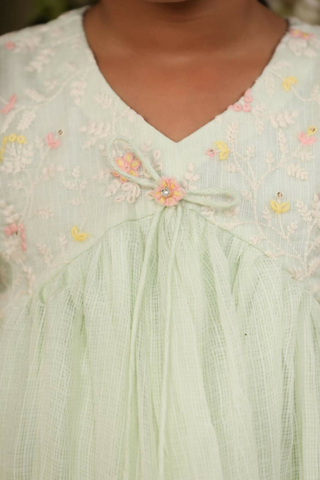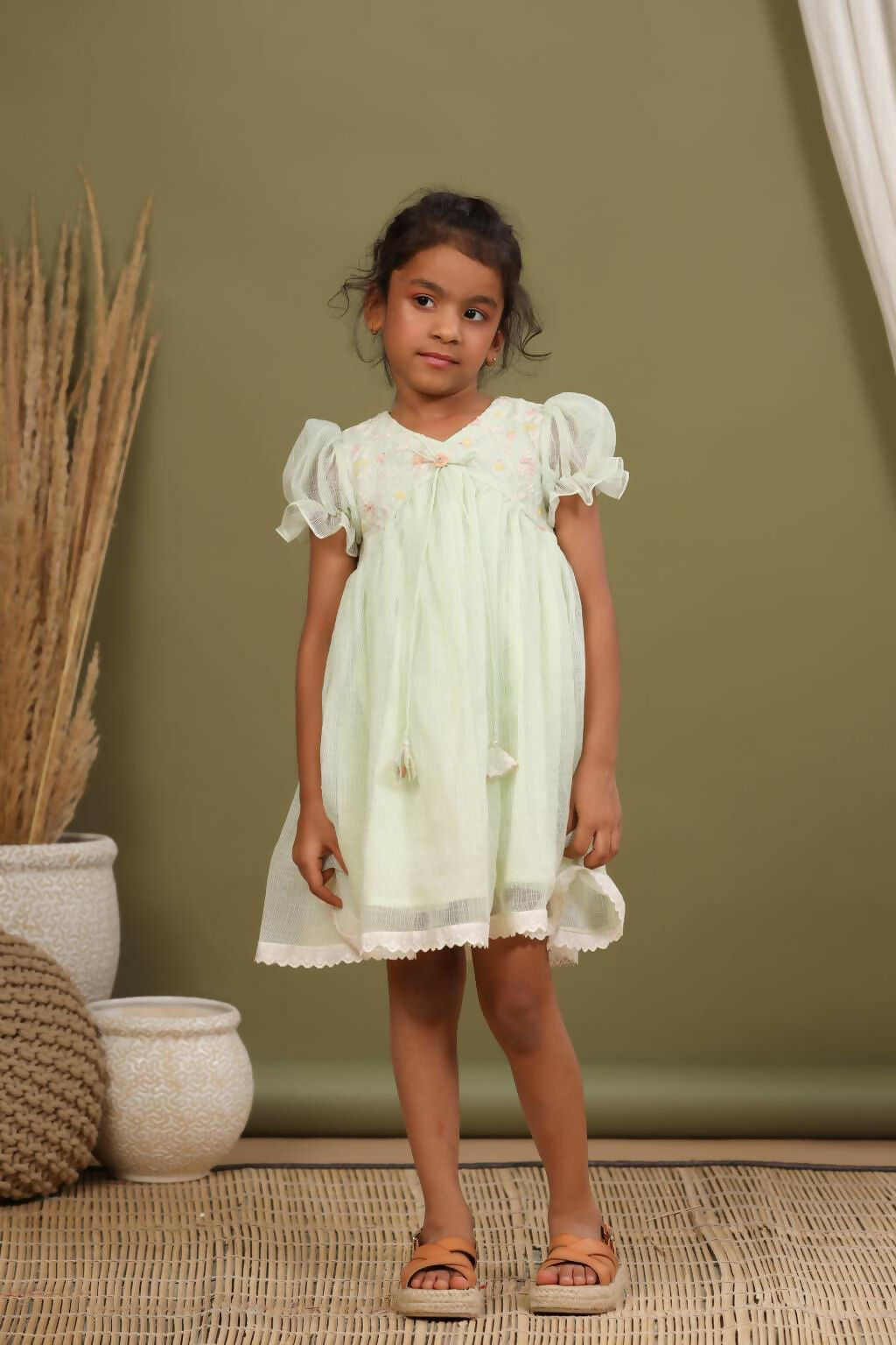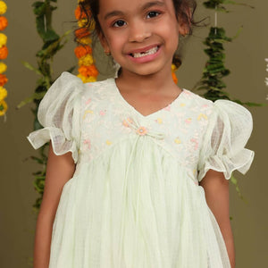 Casa Nions Green Embroided Dress With Lace Detailing