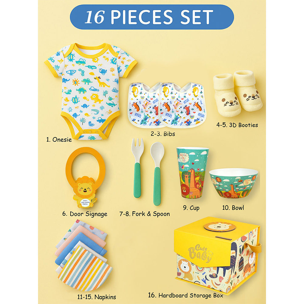 LSB 16 pcs Yellow King Lion Newborn Hamper/Gift Box for Baby Boy/Baby Girl, 0-6 months