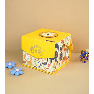 4. Hardboard Box: This piece comes nicely packed in a cute box with handle in a compact shape which makes it a true winner and totally heart warming for the new set of parents.