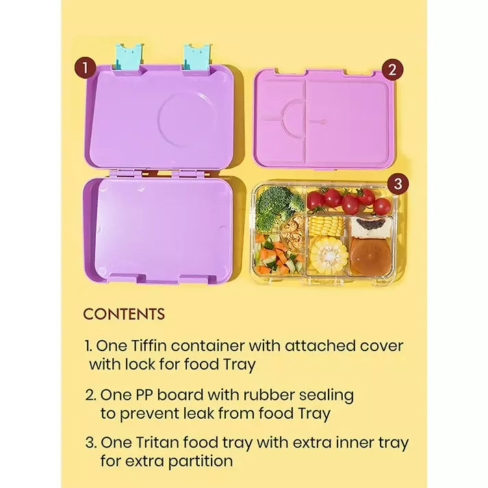 3. Leakproof Design: The Bento Box is designed in such a way that packed lunches are easy & delicious. Molded silicone lined lid engages with the tray, making Bento Box leakproof inside and out (not water). The easy to open and close latch makes Bento Box a perfect lunchbox, even for toddlers.The removable compartmentalised tray is divided up into 5 wells, each sealed independently by one lid (make sure not to overpack in order to leak!).