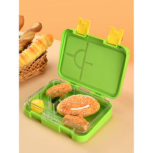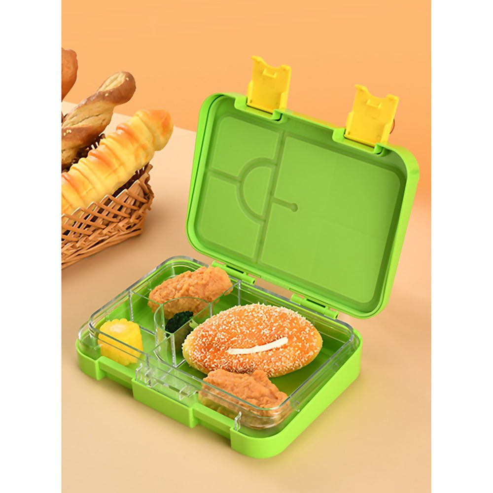 3. Leakproof design: The Bento Box is designed in such a way that packed lunches are easy & delicious. Molded silicone lined lid engages with the tray, making Bento Box leakproof inside and out (not water). The easy to open and close latch makes Bento Box a perfect lunchbox, even for toddlers.The removable compartmentalised tray is divided up into 5 wells, each sealed independently by one lid (make sure not to overpack in order to leak!).