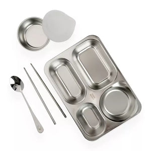 4. Dip Container, stainless steel Spoon and stainless steel Chopsticks : This comes along with a dip container and a pair of stainless steel chopsticks and a spoon which easily fits in the tray of the tiffin.