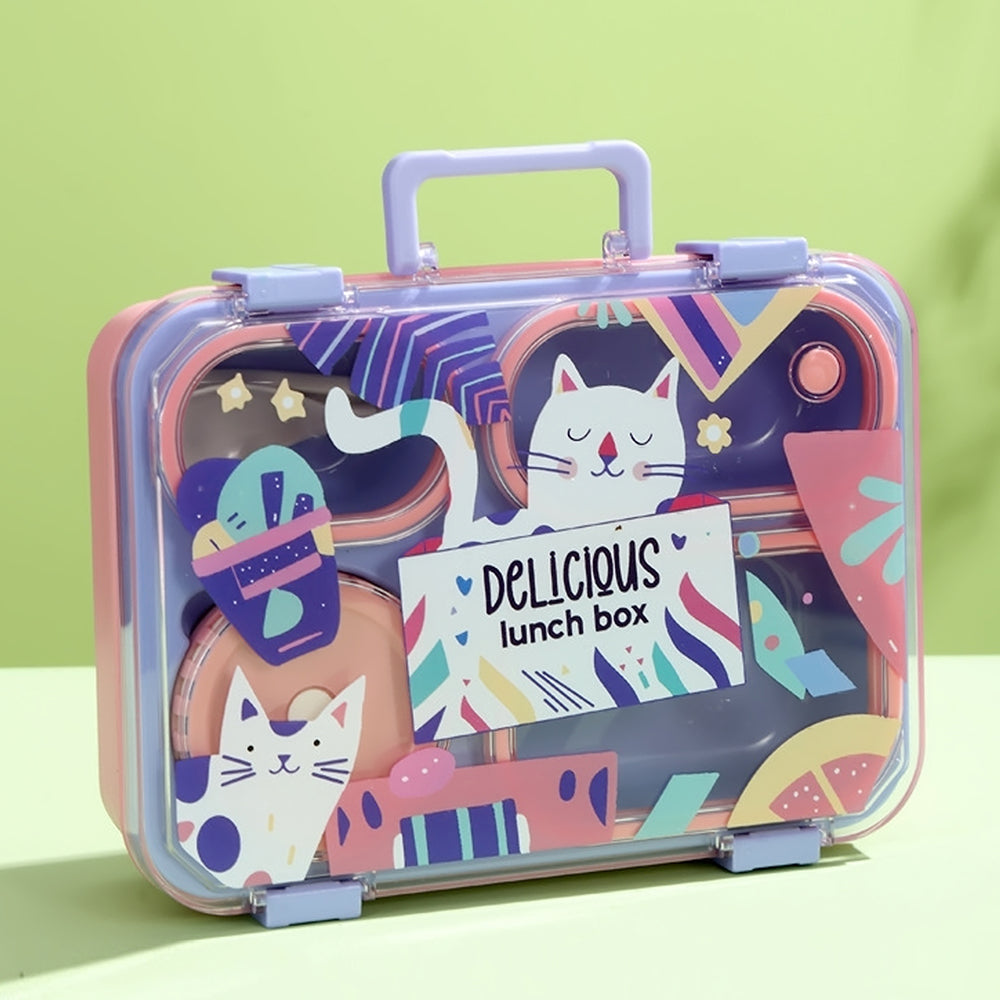 Little Surprise Box,Purple Meow Compact Tiffin Lunch Box for Kids