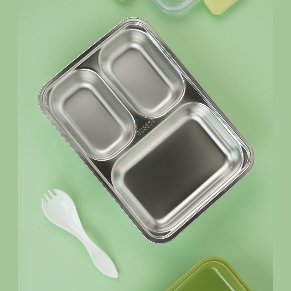 3. Three Compartments: This is a generous sized 3 section Lunch Box. Hence it becomes easier to carry different kinds of food placed in different compartments. It ensures that the food does not travel to another compartment.