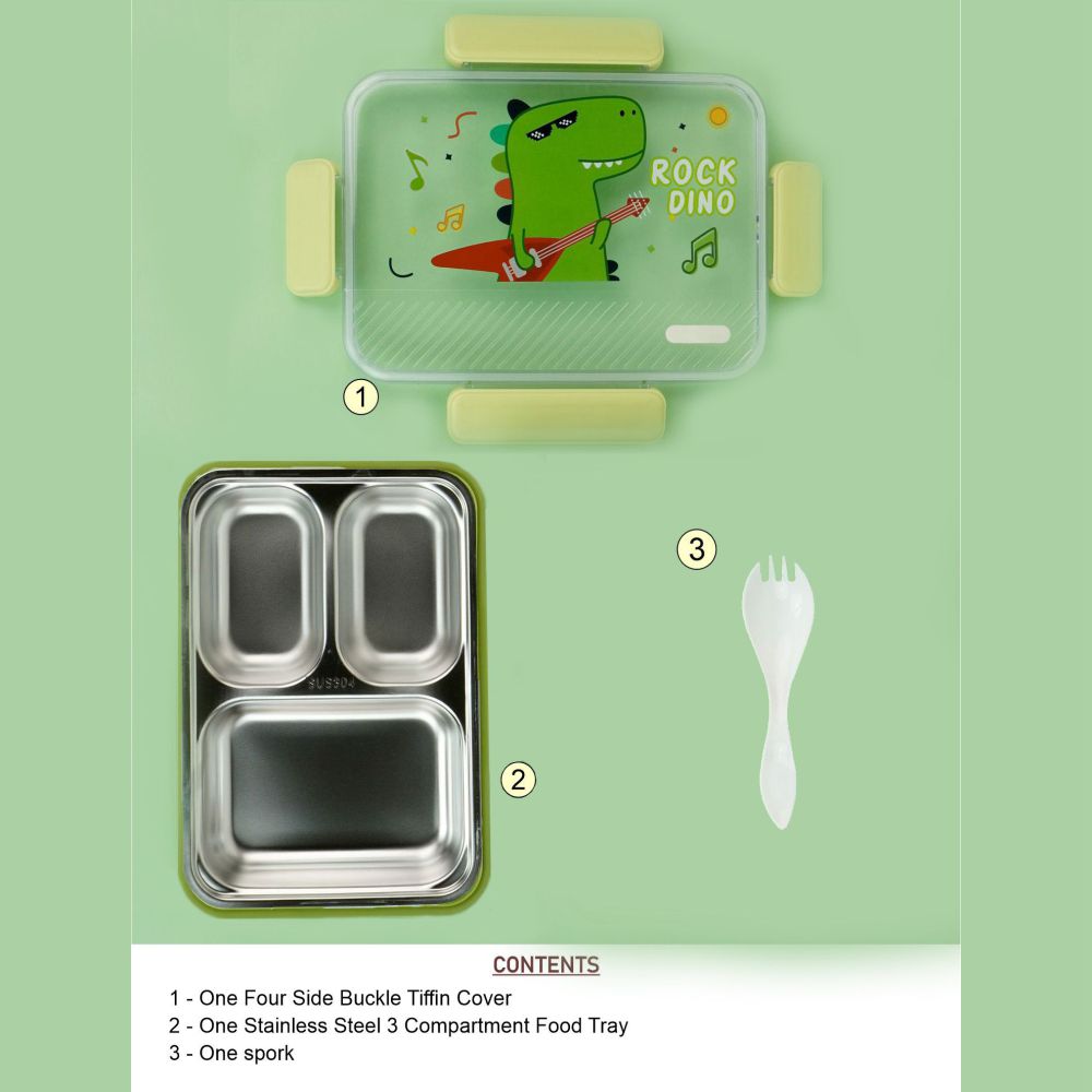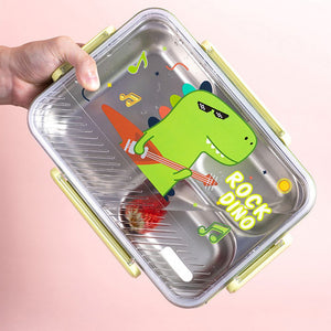 Little Surprise Box,Rock Dino Green Big Size Stainless Steel Kids Lunch Box