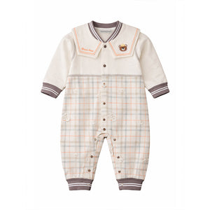 LSB Brown and Cream Sailor Collar Brave Bear Full Sleeves Jumpsuit Romper for Tiny Toddlers