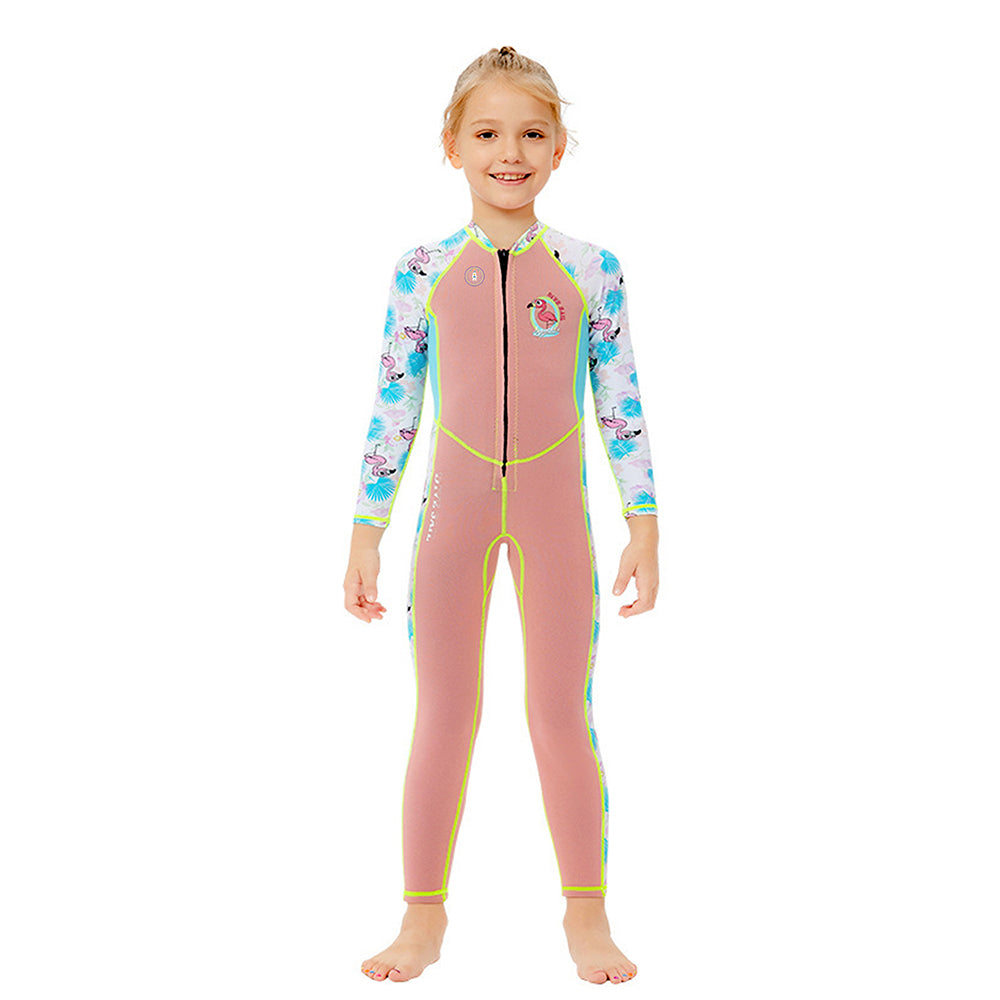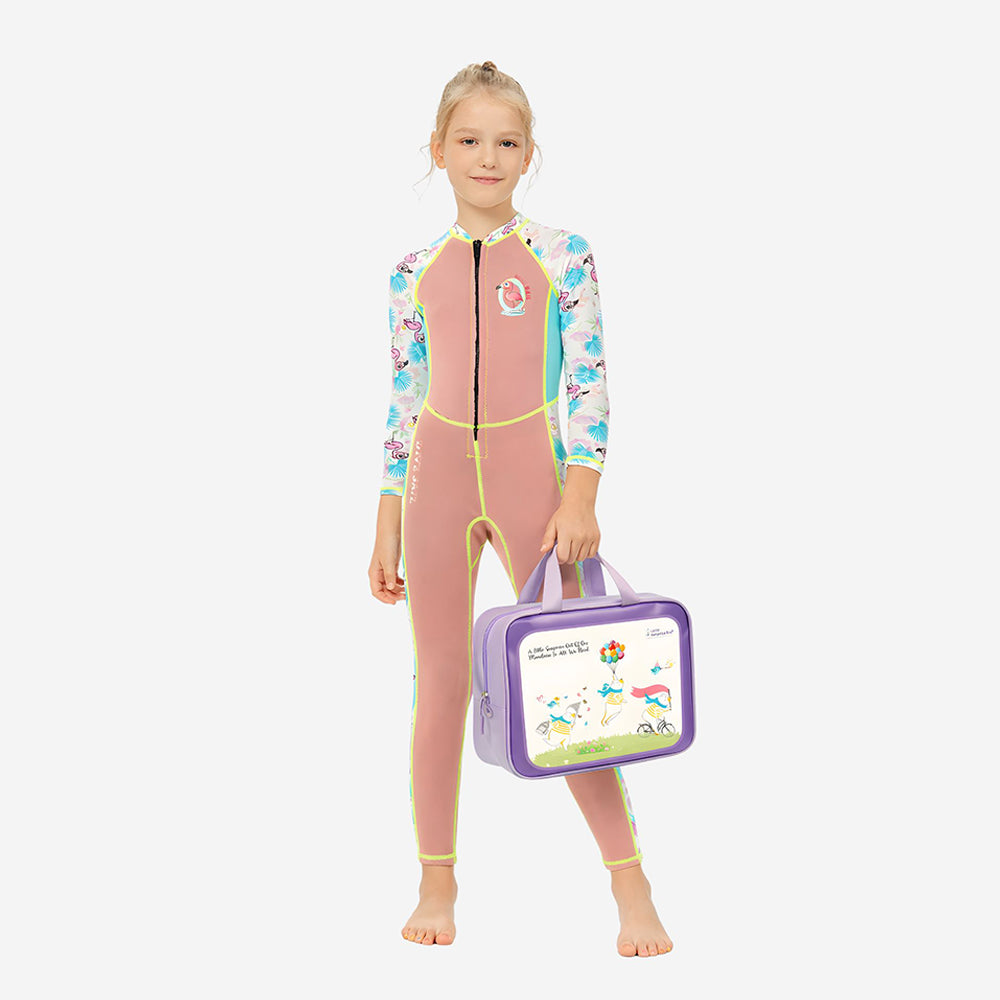 LSB Dive Peach Flamingo & Tropical Printed Full Length 2mm Neoprene Kids Swimsuit with Free Washbag