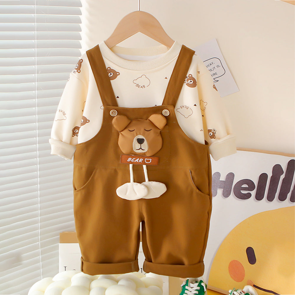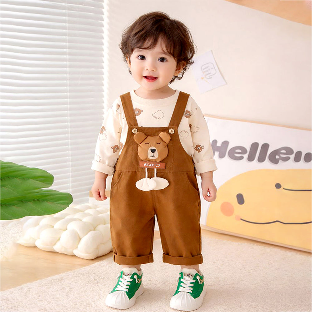 3D Brown Bear Hanging Legs Dungaree with Tshirt, 2pcs set for Toddlers & Kids