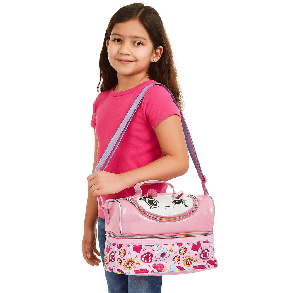 Little Surprise Box,Shiny Meow Cat Theme Double Compartment Insulated Lunch Bag For Kids