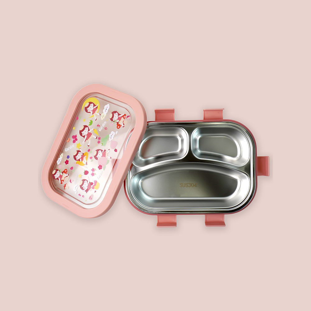 Little Surprise Box,3 Sections Peach Fairy Stainless Steel Lunch Box For Kids