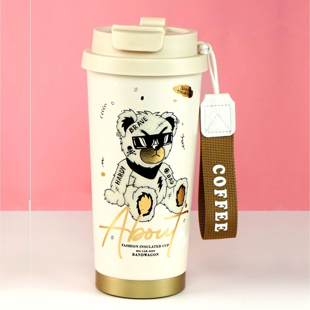 Little Surprise Box,Grey Panda Head Stainless Steel Thermos Water Bottle, 350 ml