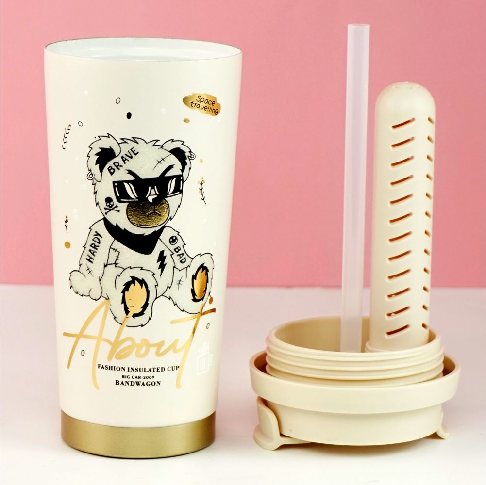 Little Surprise Box,White Ted Stainless Steel premium Insulated Detox Infuser Bottle with Tea and Fruit Infuser attachment, 520ml