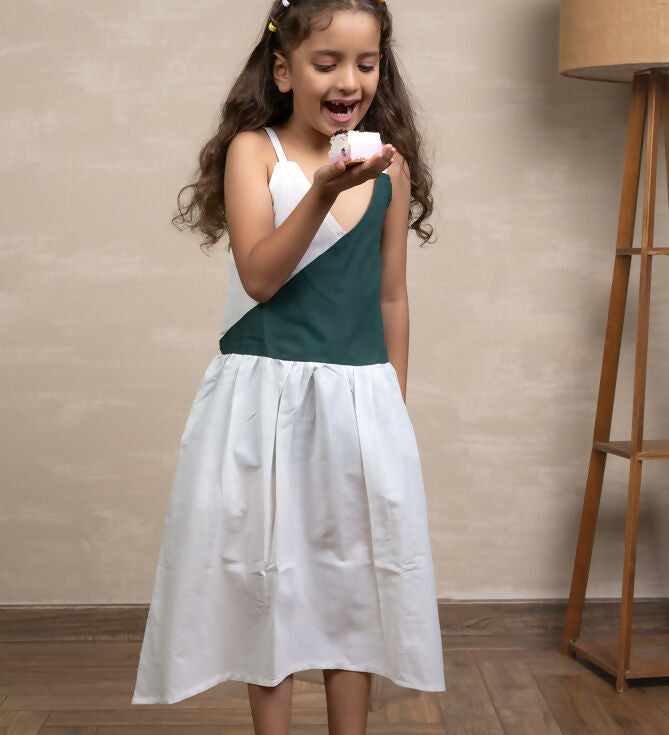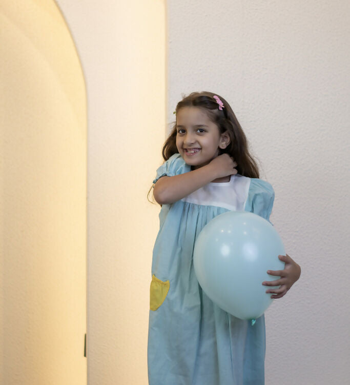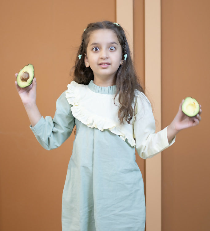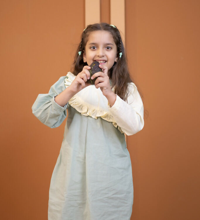 Mamarill Girls A Sweet And Stylish Mint Green Dress With Elegant Cream Detailing.