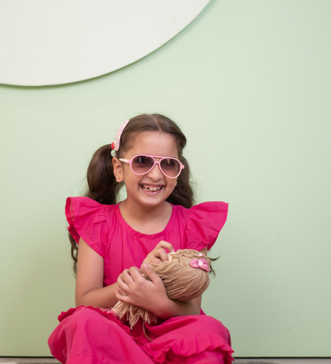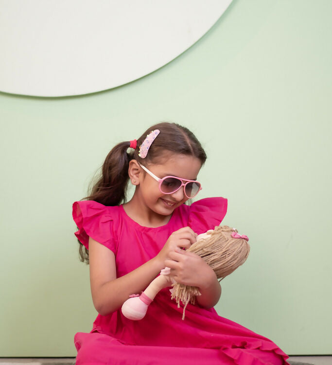 Mamarill Girls Pink Petal Dress Features A Bright Pink Hue Ruffled Sleeves