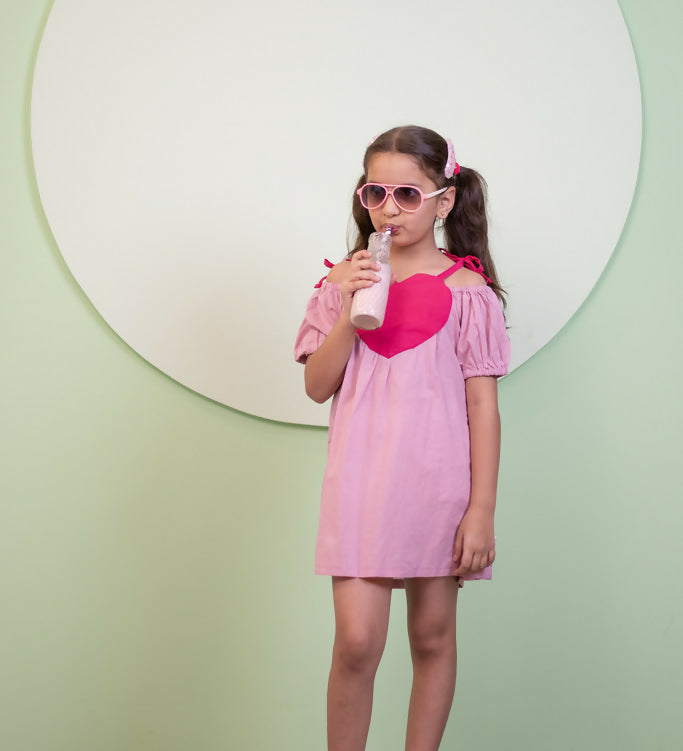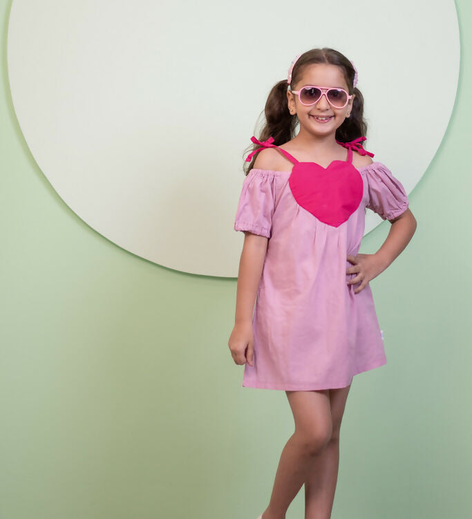 Mamarill Girls Sweetheart Dress Is A Playful Pink Dress With A Bold Red Heart On The Front.