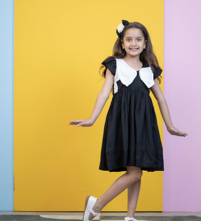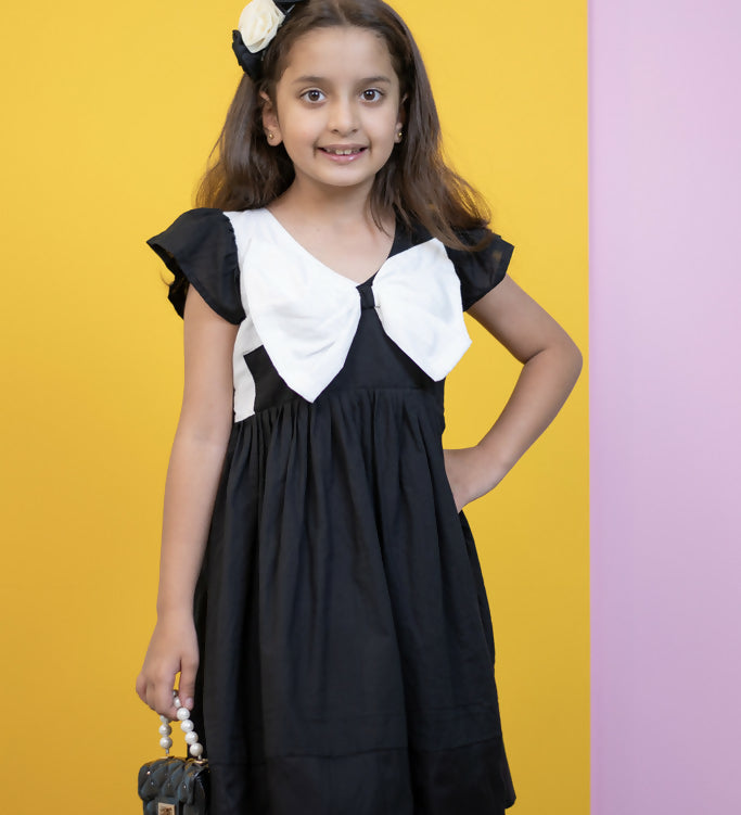 Mamarill Girls Chic Bow Tunic Is A Chic Black Dress With A Distinctive White Bow Accent On The Chest.