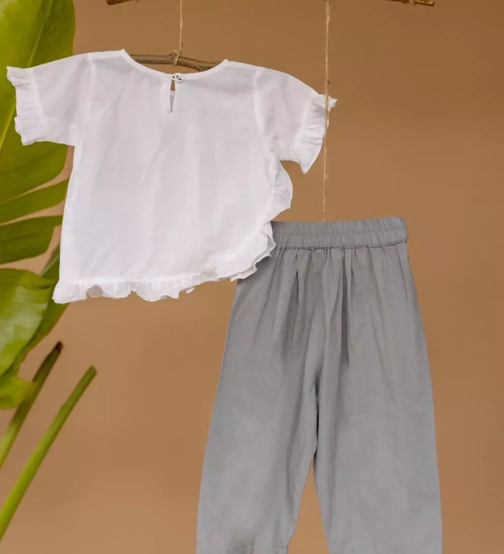 Mamarill Girls White Cotton Top With Pant