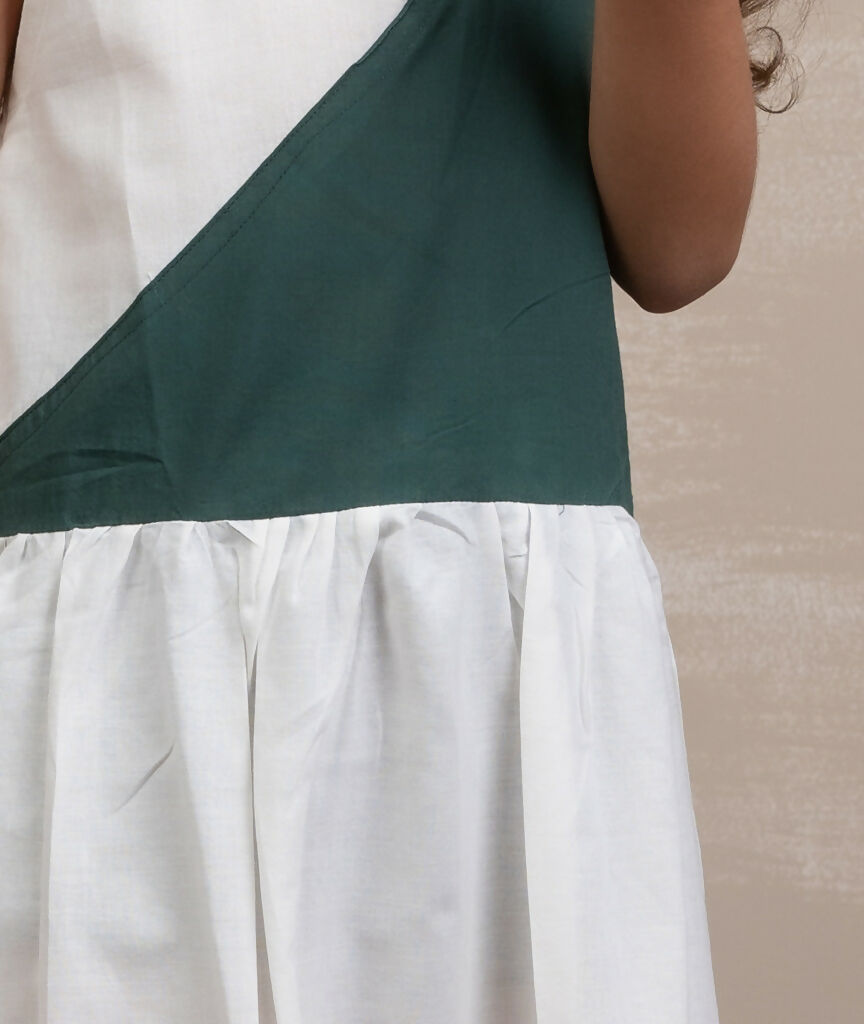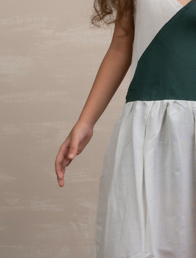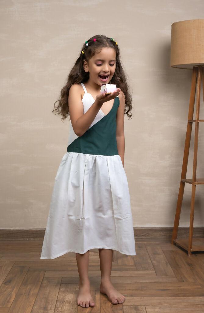 This Breeze Block Dress Combines The Classic Elegance Of White With The Freshness Of Green In A Unique Color Block Design. The Dress Features A Hi-Lo Hemline, Adding A Modern Twist To A Timeless Color Combination. This Dress Is Meticulously Designed For Both Style And Comfort, Making It A Versatile Choice For Various Occasions. It Is The Perfect Blend Of Classic And Contemporary, Ensuring Your Child Looks And Feels Fabulous While Enjoying A Breath Of Fresh Air In The World Of Fashion. Crafted With Care, This Dress Is Not Only Fashion-Forward But Also Incredibly Gentle On Your Child'S Skin. We'Ve Chosen The Finest Organic Cotton To Ensure A Luxuriously Soft Feel Against Your Little One'S Body.