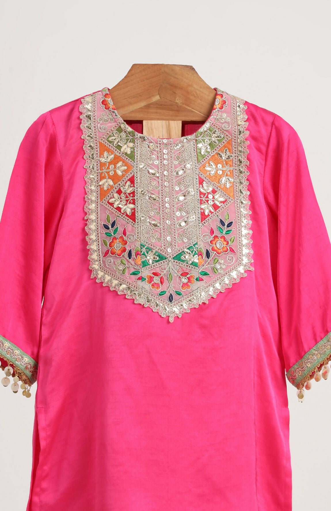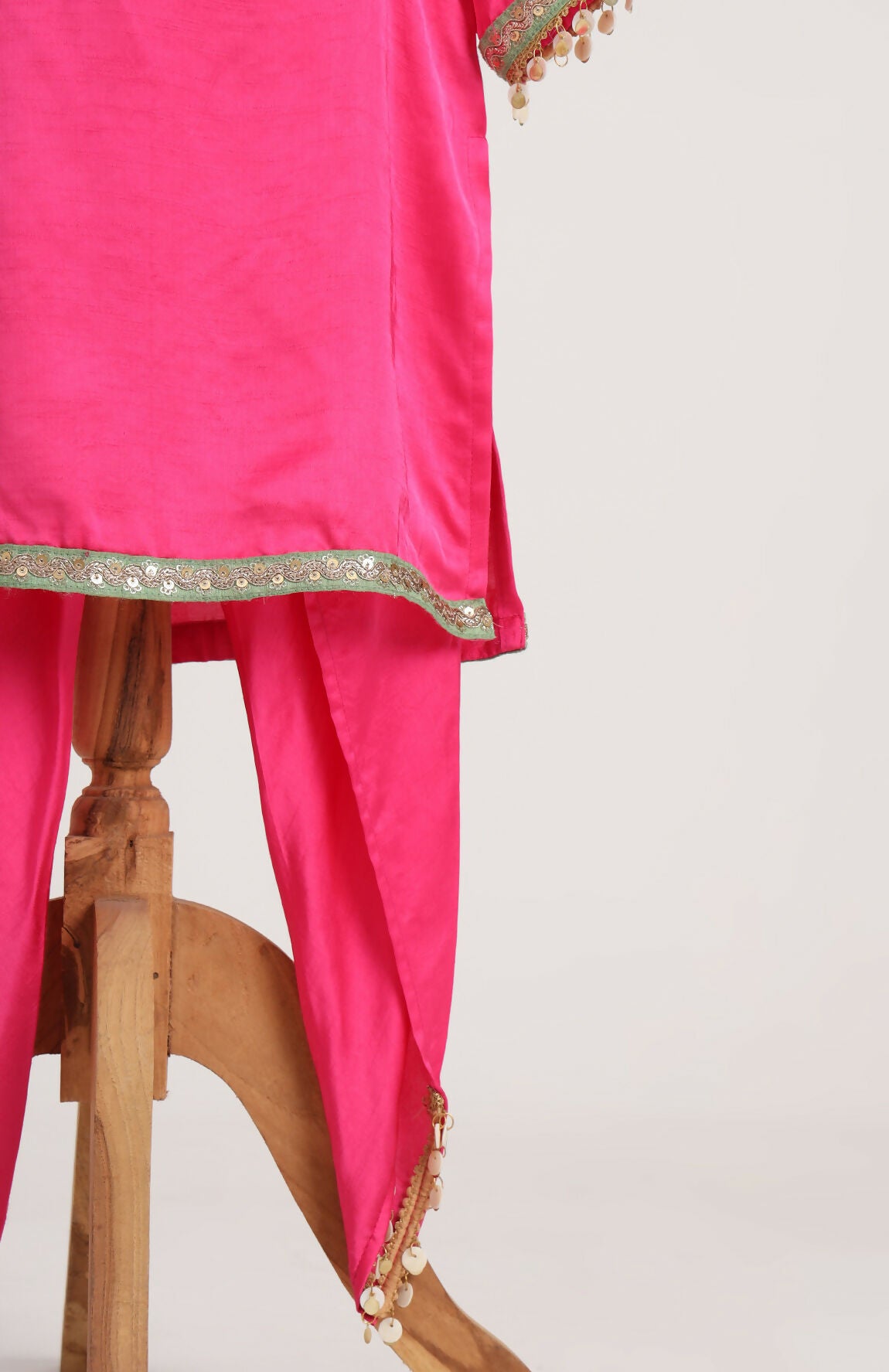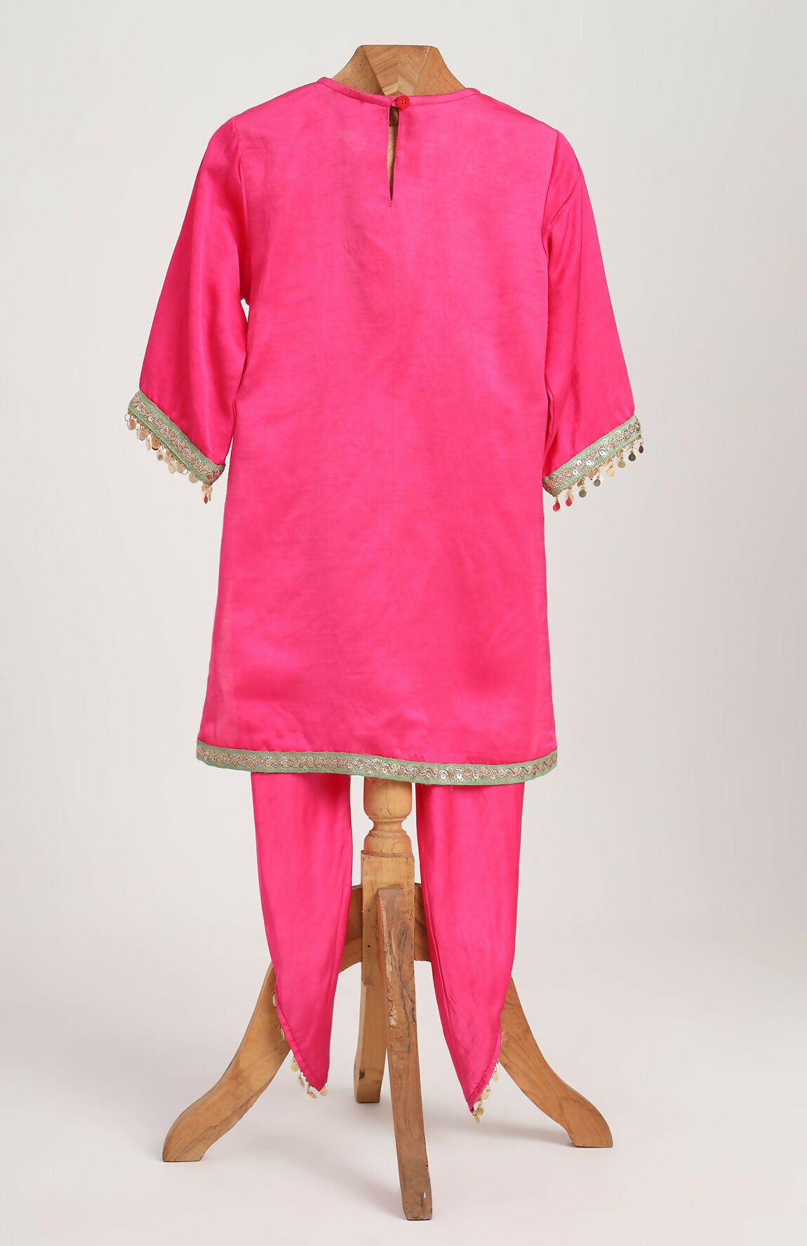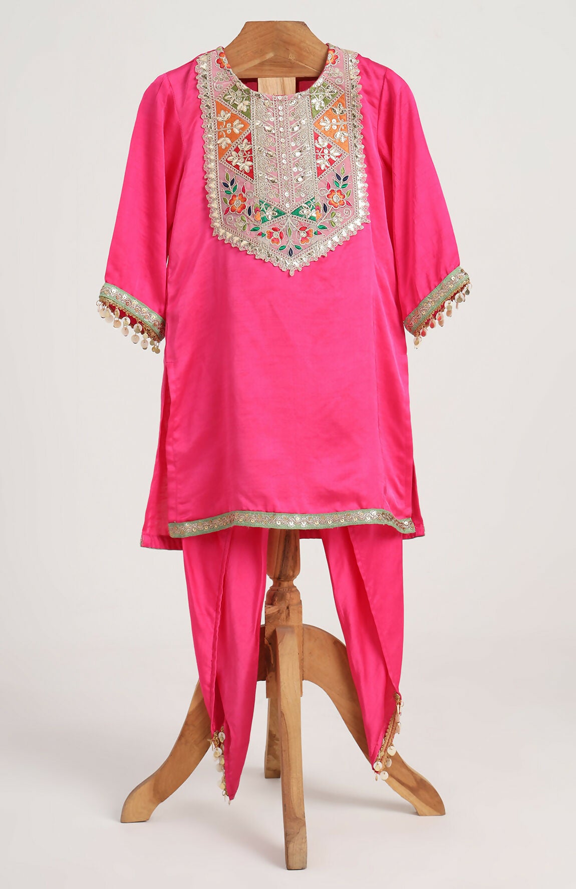 Raw Satin Kurta paired with Dhoti Pant.
