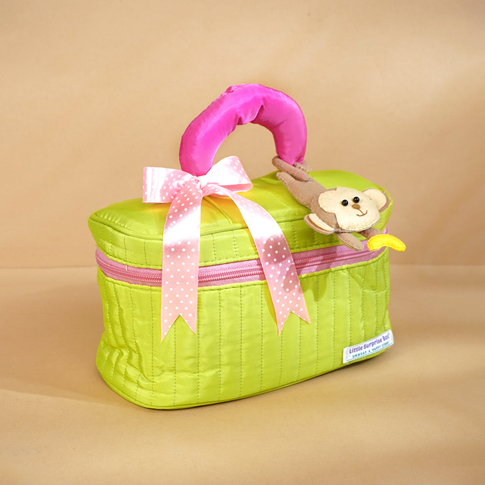LSB 13 pcs Pink Monkey soft satin pouch Newborn Hamper /Gift Box for Baby, 0-6 months